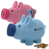 Moulded from hard flexible. Screw off nose cone. Colour/s Pink, Blue. Item Size (mm) 210L x 135H x 120D Print Area (mm) Behind coin slot - 35mm Diameter, Side 1 - 48mm Diameter, Side 2 - 48mm Diameter |