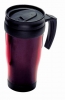 Plastic thermal 400ml travel mug with sliding cap in the lid.
